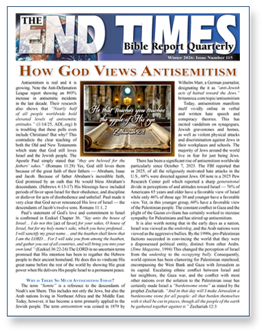 Antisemitism is real and it is growing. Note the Anti-Defamation League report showing an 893% increase in antisemitic incidents in the last decade. Their research also shows that “Nearly half of all people worldwide hold elevated levels of antisemitic attitudes.” (1/14/25, ADL.org) It is troubling that these polls even include Christians! But why? This contradicts the clear teaching of both the Old and New Testaments which state that God still loves Israel and the Jewish people. The Apostle Paul simply stated that “they are beloved for the fathers’ sakes.” (Romans 11:28) Yes, God still loves them because of the great faith of their fathers — Abraham, Isaac and Jacob. Because of father Abraham’s incredible faith, God promised by an oath that He would bless Abraham’s descendants. (Hebrews 6:13-17) His blessings have included periods of favor upon Israel for their obedience, and discipline or disfavor for acts of disobedience and unbelief. Paul made it very clear that God never renounced His love of Israel — the descendants of Jacob’s twelve sons. Romans 11:1, 2